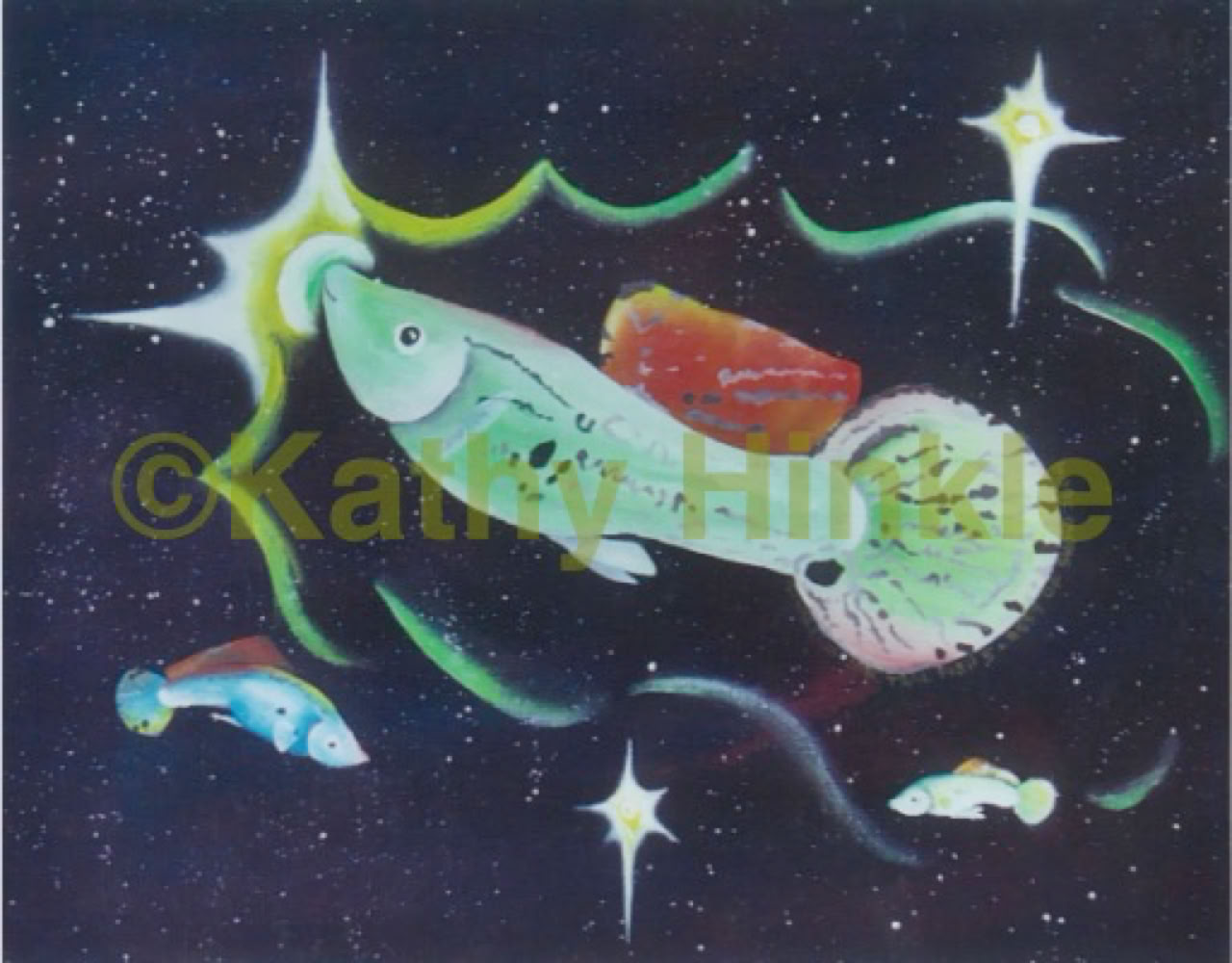 Commissions of fish swimming through space instead of through water.